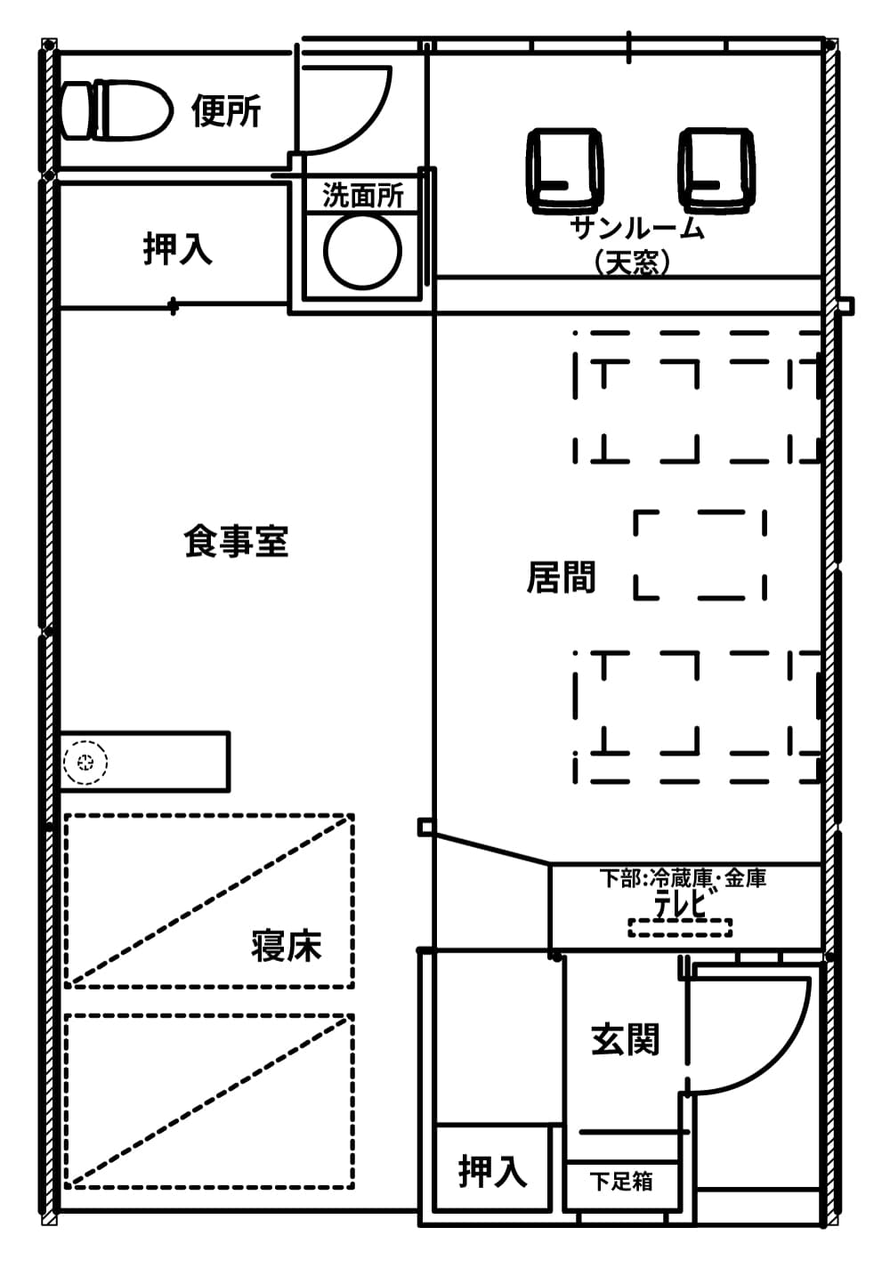 어느 방도 거실과 판장의 다다미가 있는 1층, 침실이 메인의 2층으로 이루어지는 로프트풍의 구조입니다.