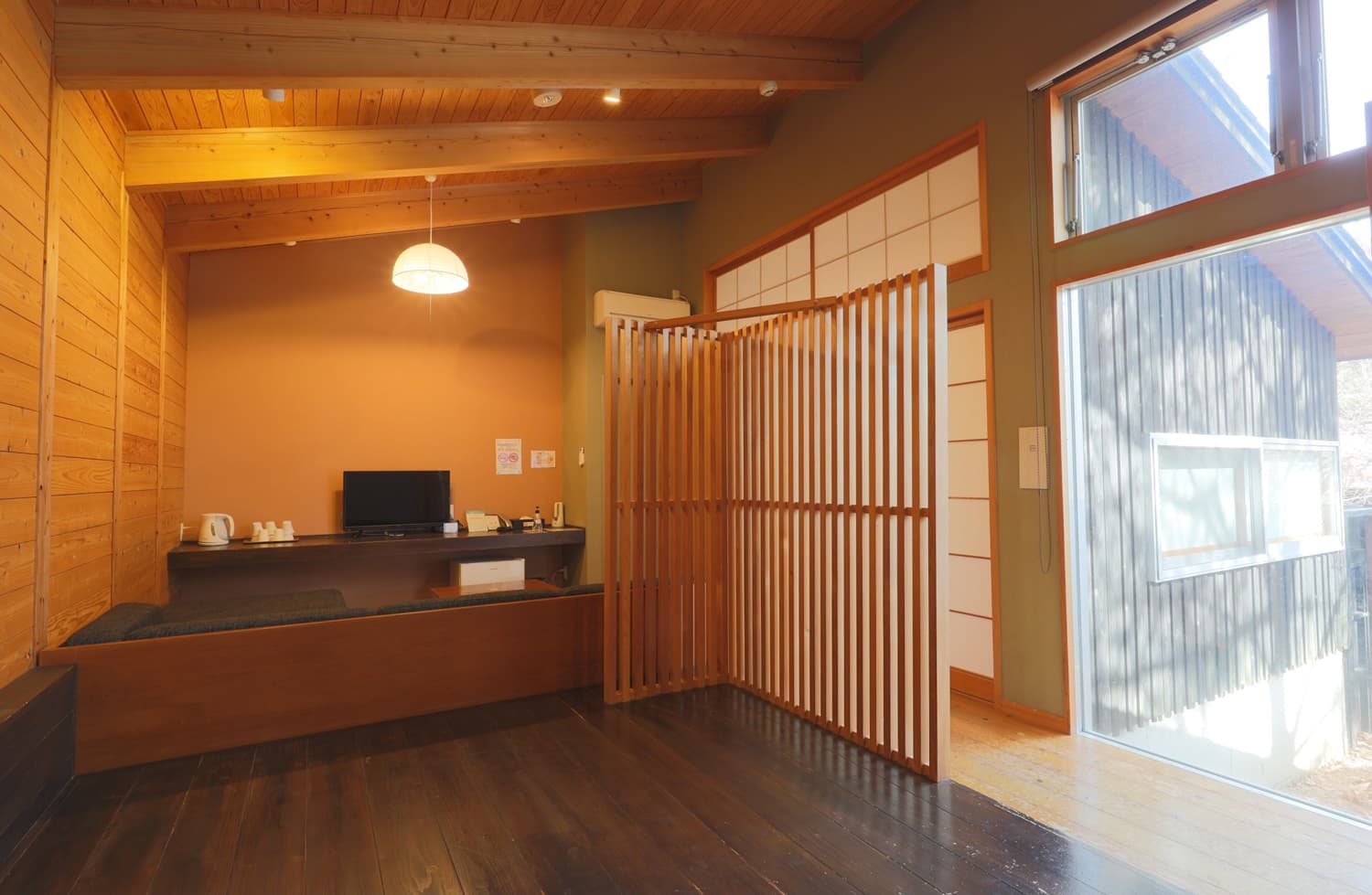 2~3명을 위한 A타입, 2~6명을 위한 B타입의 크게 2종류로 나뉘어져 있으며,객실에 반 노천탕이있는 F 타입의 크게 3 종류로 나누어져 있으며, 총 12실 있는 객실은 모두 구조가 다른 것도 큰 특징입니다.